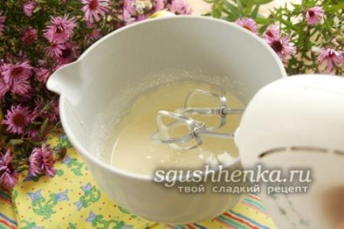 Белки взбить с сахаром в плотную пену, чтобы при наклоне миски белки не выливались.