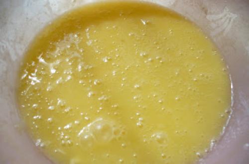 Яйца слегка взбейте с сахаром, чтобы они чуть начали пениться и стали более однородными и немного побелели.
