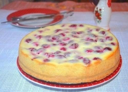К творогу добавить сахар, сметану, ванилин, яйца, тщательно перемешать. Вишню перемешать с крахмалом. Вылить творожную начинку в форму на тесто. Сверху выложить вишню, вдавливая в творог. Выпекать творожный пирог с вишней в духовке 40-50 минут при температуре 170 градусов. Творожный пирог готов с вишней. Гармоничное сочетание нежнейшего творога и кисловатой вишни не оставят вас равнодушными приятного аппетита!