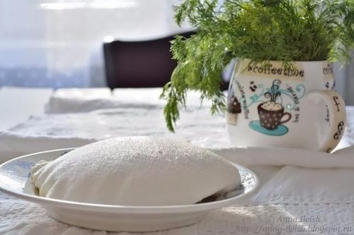 1. я смешала 500 г сметаны 20% жирности, 500 г кефира 2, 5% жирности и 1 ч л соли. Вылила в дуршлаг, выстеленный х/б тканью. И в холодильник под пресс на 2 суток.