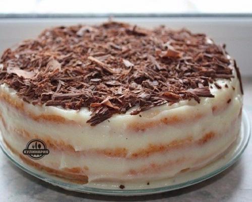 Смазать коржи кремом, посыпать орехами и шоколадом. Приятного аппетита!