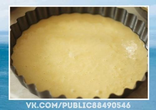 4 вылить 1/2 теста на дно формы. Распределить сверху яблоки. Залить оставшейся частью теста.