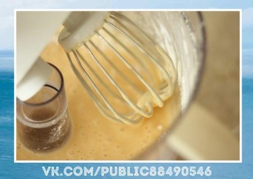 1 яйца взбивать с сахаром 10 минут до увеличения массы втрое.