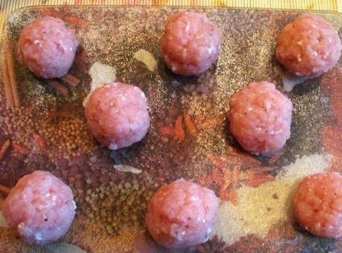 1. рецепт очень и очень прост - сначала мы катаем из посоленного - поперченного фарша небольшие шарики.