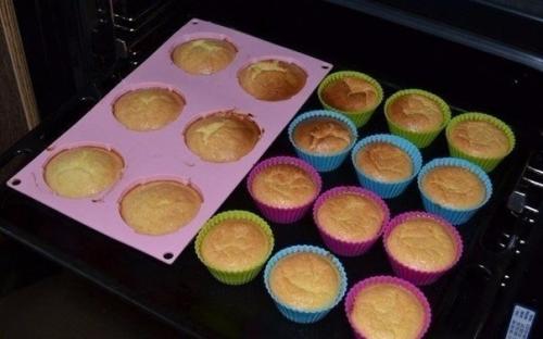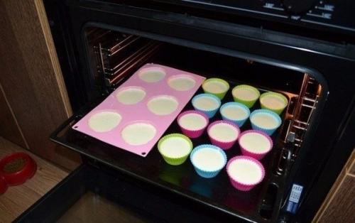3. выкладываем тесто в формочки и ставим в разогретую до 180-200* духовку на 20-30 мин.
