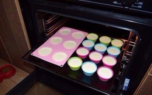 4. выкладываем тесто в формочки и ставим в разогретую до 180-200* духовку на 20-30 мин.
