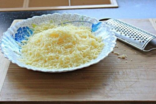 6. яйца слегка взбиваем и перемешиваем с сыром и зеленью.