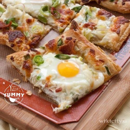 4. поставьте противень в духовку и выпекайте около 15 минут до золотистой корочки пока сыр не расплавится и не схватятся яйца. Приятного аппетита!