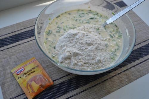 Теперь остается только добавить муку и разрыхлитель и снова все хорошо перемешать.