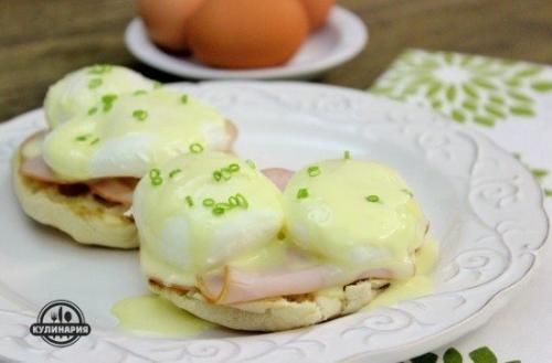 8. поместите на тосты с беконом яйца пашот, полейте соусом и украсьте зеленью. Приятного аппетита!