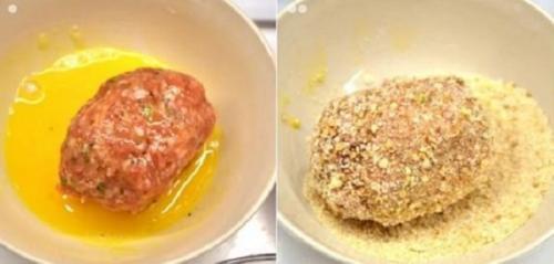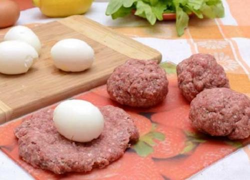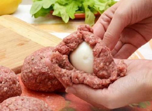 Заверните очищенные яйца в фарш, сформировав котлеты.