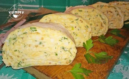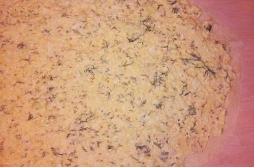 Смешала сыр, яйца, зелень и чеснок. Добавила горчицу и майонез, и хорошенько перемешала. * Я не солила начинку, так как майонез и горчица дают свой солоноватый привкус. Но если вы любитель солёненького, советую попробовать сырную смесь, прежде чем заворачивать ее в лаваш, и если нужно, подсолить.