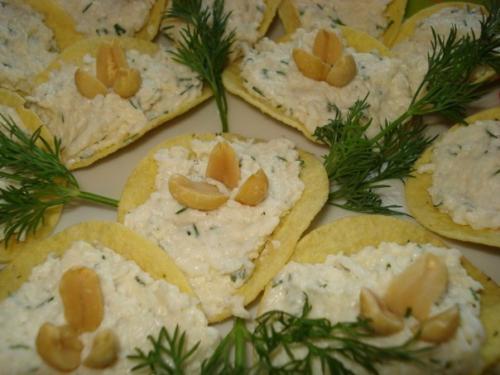 2. выкладываем на чипсы, в серединке арахис с солью из пачки. Очень вкусно!