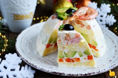 Итак, сейчас я вам подробно расскажу и покажу, как приготовить заливной салат с креветками и авокадо. Давайте мы побалуем себя и близких красивым праздничным столом!