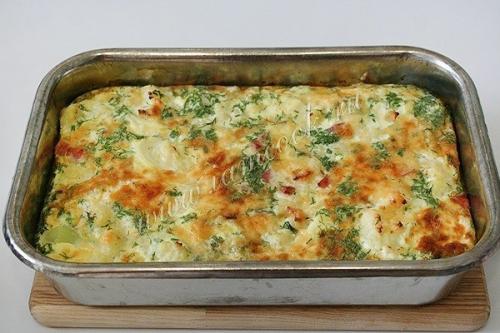 Готовой запеканке из цветной капусты дайте немного остыть, а затем разрежьте на порционные кусочки и подавайте к столу. Приятного аппетита!