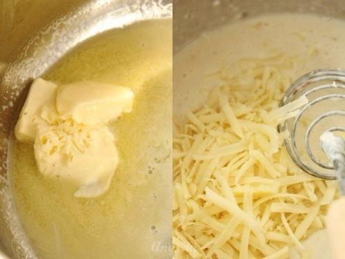 Соус. В сотейнике смешать масло, муку, молоко, щепотку соли и перец. Держать на среднем огне до загустения, постоянно помешивая.
