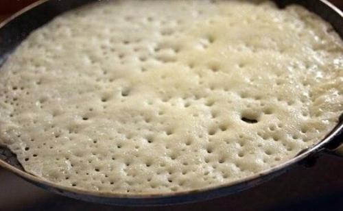 Приготовление: 1. взять пол-литра молока. 2. 2 яйца взбить венчиком. 3. добавить 1 ч. л. разрыхлителя и муки столько, чтобы получилось тесто, как на оладьи. 4. затем вылить 1 стакан крутого кипятка, перемешать. 5. добавить 7 ст. л. растительного масла. Тесто готово! 6. жарить как обычно, на раскаленной сковороде, с двух сторон. Приятного аппетита!