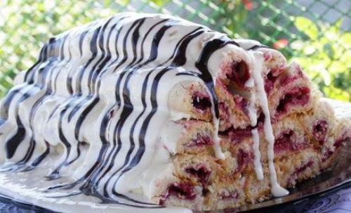 Знаменитый торт монастырская изба со сметанным кремом и вишней.