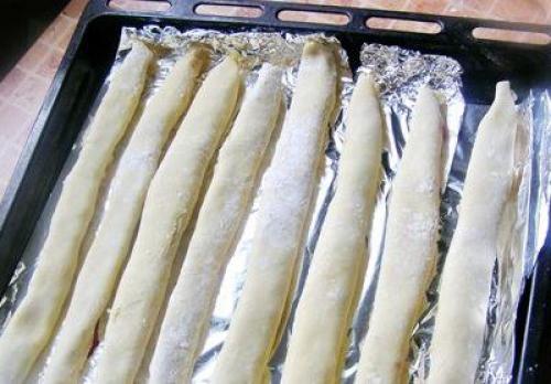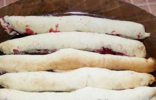 10 на противень, устланный пергаментом или фольгой, смазанной растительным маслом, выкладываем трубочки с вишней. И ставим выпекаться в духовке при температуре 190-200 градусов на 25-30 минут или до слегка румяной корочки.